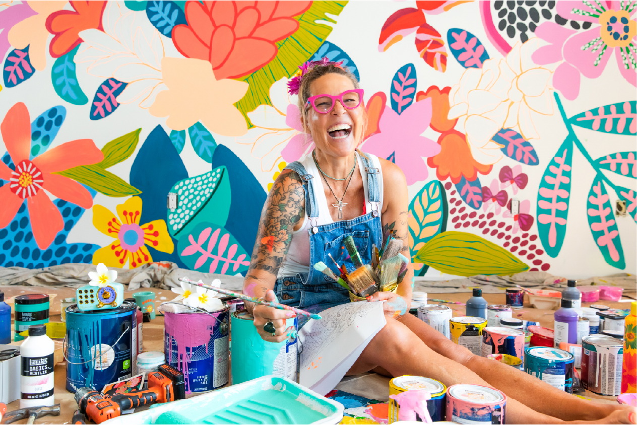 これまでに「ディズニー」や「スターバックス」「GAP」といった世界的有名ブランドをクライアントに持ち、数多くのデザインを手がけてきた実力派。感性豊かでカラフル、そしてポップな彼女のアートワークは、国境を越えて「見る人をハッピーな気持ちにする」と多くの支持を集めている。